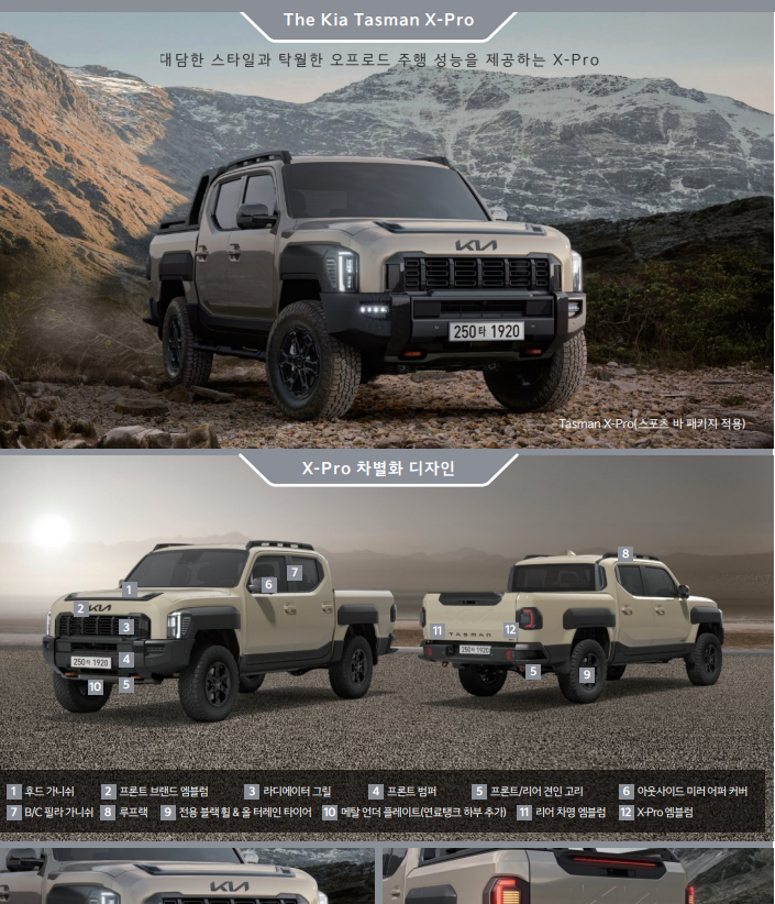 작년 10월 제다 국제 모터쇼(2023 Jeddah International Motor Show)에서 최초로 공개된 이후, 드디어 국내에서도 공식적으로 사전 계약이 시작되었습니다. 기아는 2025년 4월 서울모빌리티쇼에서 타스만 전용 전시존을 마련하여 다양한 커스터마이징 용품과 체험 프로그램을 운영할 계획이라고 밝혔습니다.