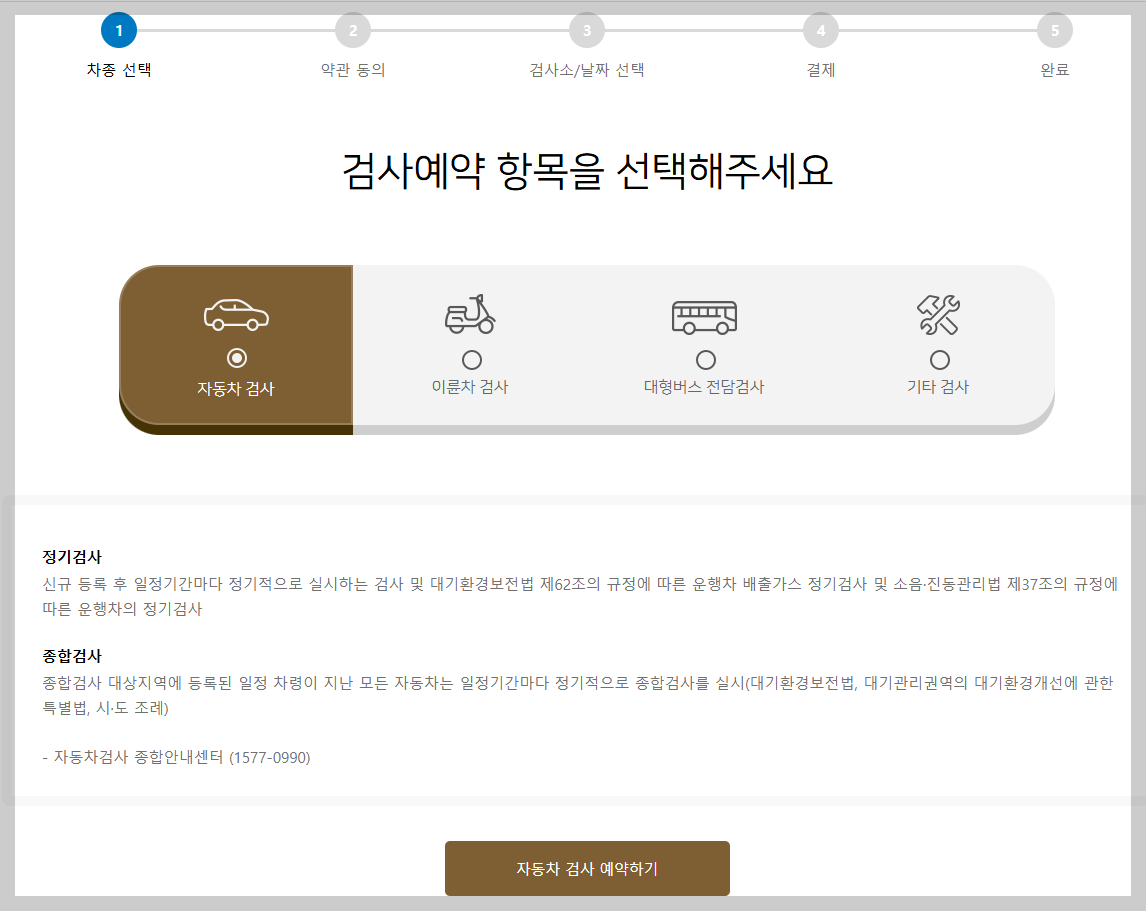 - 자동차검사 예약 항목 선택 후 차량 정보 입력