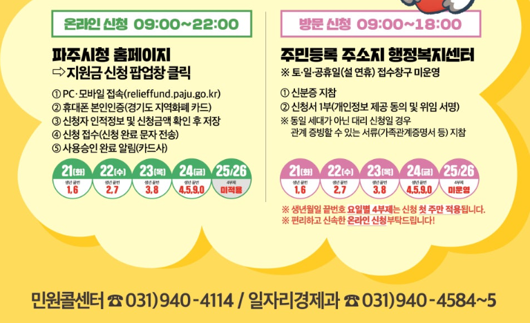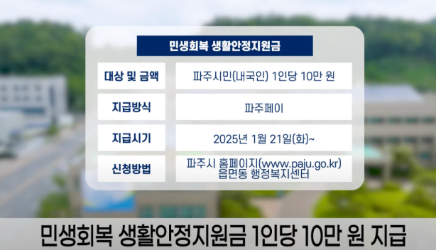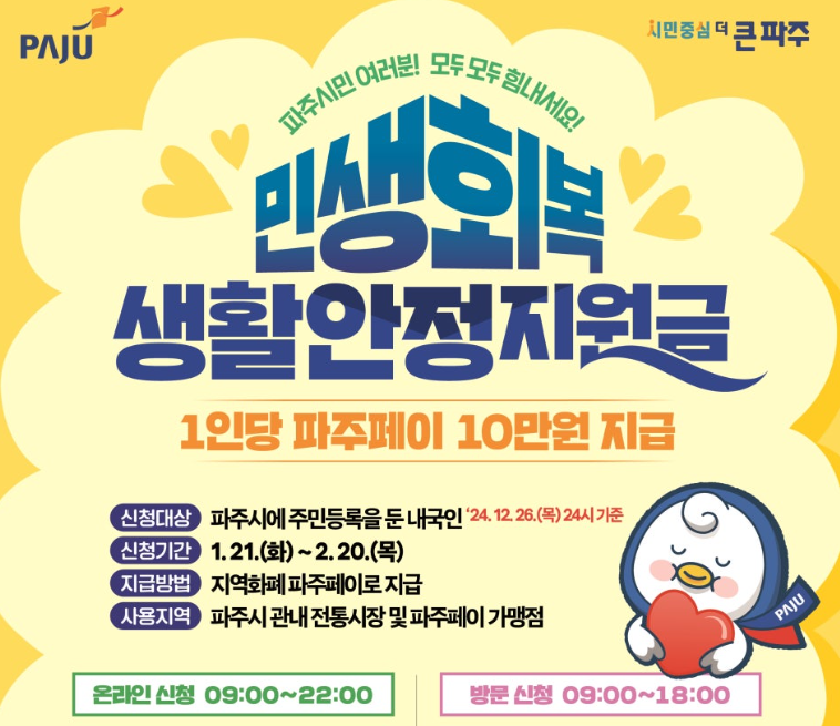 - 지원 대상: 2024년 12월 26일 24시 기준, 파주시에 주민등록이 되어 있는 내국인